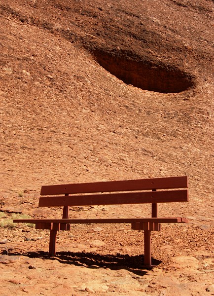 In passendem Farbton gehaltene Bank mitten in der Wildnis.
