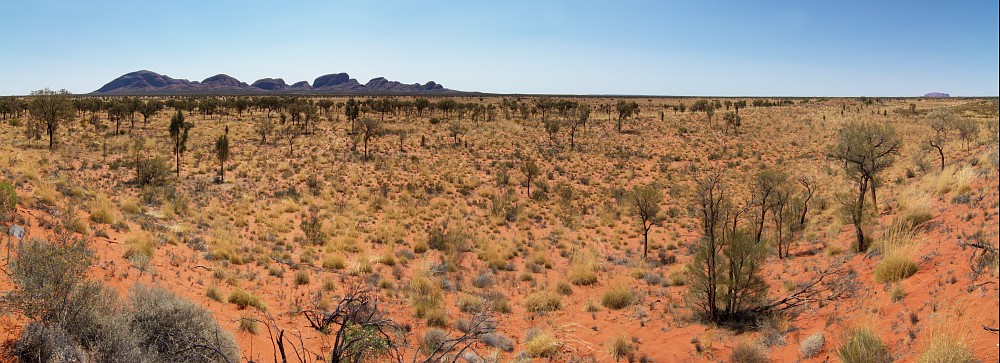 Von dort aus kann man Kata Tjuta und Uluru gleichzeitig sehen. Man bekommt einen guten Eindruck, wie klar die Luft im Red Center ist, der Uluru liegt ca. 15 bis 20 km entfernt.