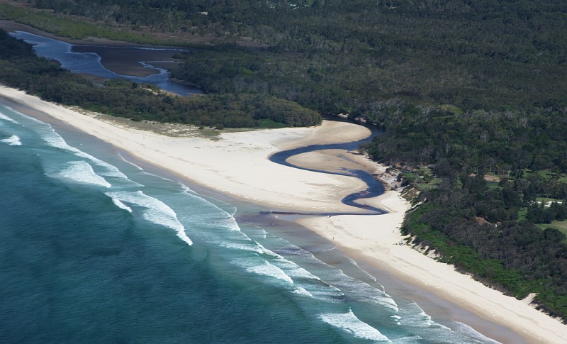 Ein kleiner Fluß mündet ins Meer.