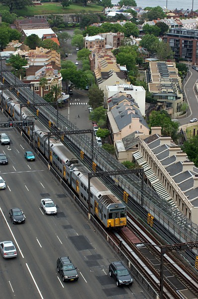 Ein Zug der City Rail überquert die Harbour Bridge.