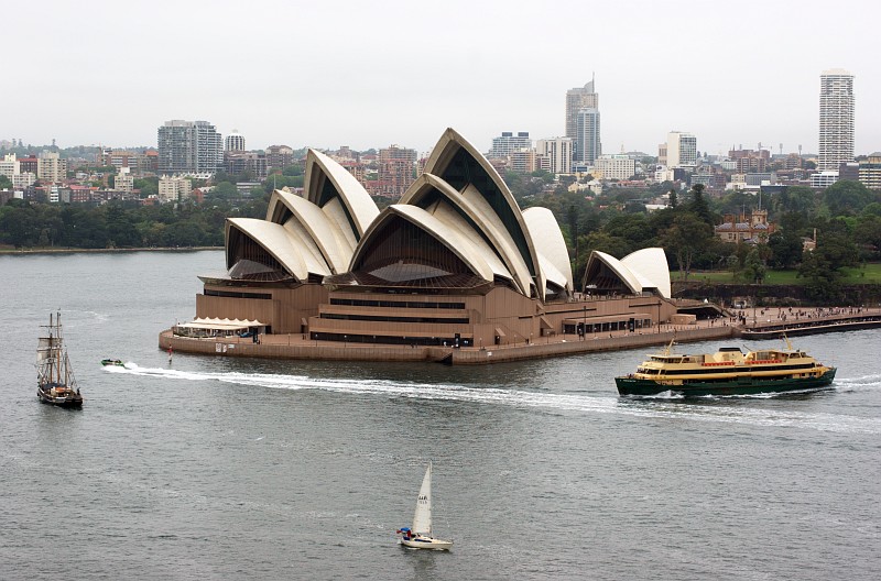 Das Opera House vom Aussichtspylon der Harbour Bridge aus gesehen.