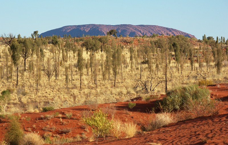 Am nächsten Tag fuhr ich nochmal zum Uluru um ihn mir etwas näher anzusehen. Bemerkenswert ist die für die trockenen Verhältnisse recht üppige Vegetation.