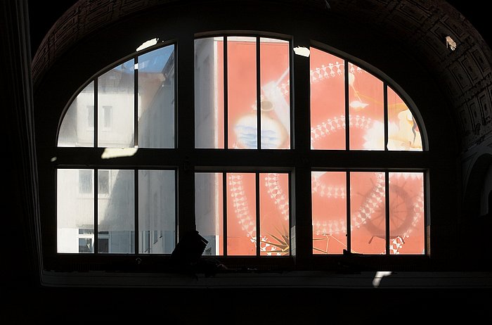 Eins der großen Fenster die sich in der Schwimmhalle befanden. (März 2007)