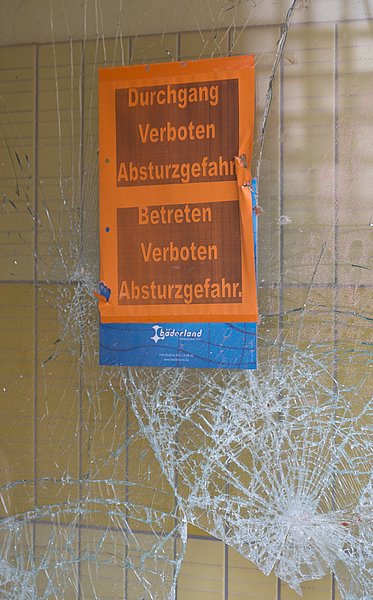 Der Hinweis was durchaus ernstzunehmen, die große Halle sah schon ziemlich einsturzgefährdet aus. (März 2007)