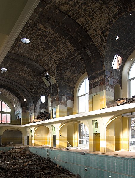 Blick in die große Schwimmhalle aus der Jugendstilzeit. (März 2007)