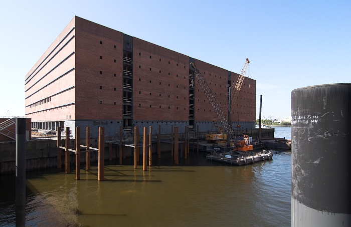 Die ersten Pfähle für die Container der Bauarbeiter sind gesetzt (April 2007).