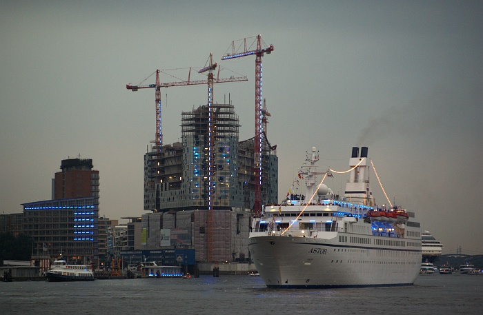 Die Astor bei der Auslaufparade der Cruise Days am Abend (Juli 2010).