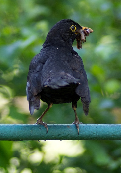 Amselpapa ist ein anstrengeder Job. 4 gefräßige Mäuler wollten gestopft werden.
