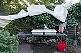 Als wir den Garten übernommen haben war er in einem ziemlich zugewachsenen Zustand, da er einige Jahre nicht mehr richtig gepflegt wurde. Bäume mussten gefällt bzw. stark zurückgeschnitten werden, die überwucherten Beete wurden entkrautet und Platz für das Gewächshaus geschaffen. Viel Arbeit, die aber auch viel Spaß macht.