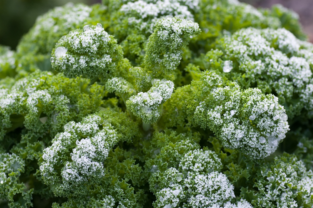 Dezember 2014, Rauhreif auf dem Grünkohl, Zeit für die Ernte.
