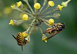 Unmengen an Insekten schwirren durch den Garten. Verschiedenste Fliegen-, Bienen- und Hummelarten fühlen sich hier wohl. Den Hummeln habe ich zusätzlich eine Extraseite gewidmet.