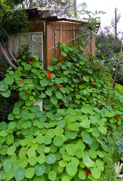 Die Kapuzinerkresse hat das Rennen gewonnen. Dieses Jahr wollen wir es mit Wicken versuchen.