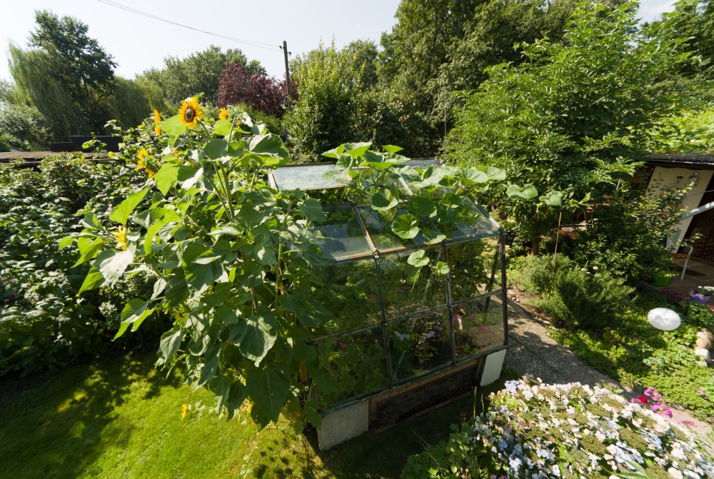 Knapp eine Woche später. Kürbis und Sonnenblumen fühlen sich wohl (22.8.2015).