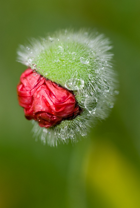 Durch die Haare sehen Regentropfen auf dem Mohn besonders reizvoll aus.