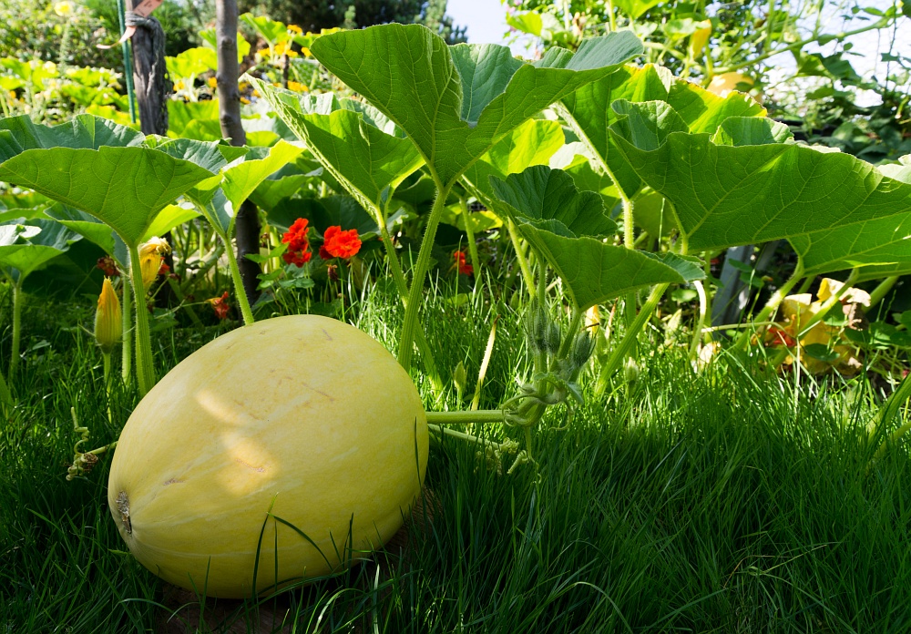 Ein noch kleiner Riesenkürbis. Er wog am Ende ca. 10kg.