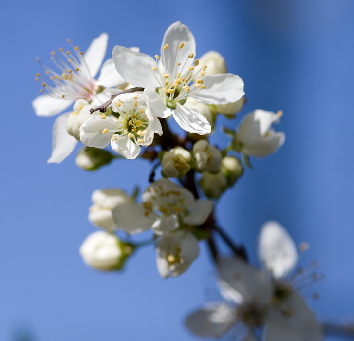 Direkt am Wasser wachsen verschiedene Arten von wilden Mirabellen, pflaumenähnliche blaue (könnten Haferpflaumen sein), rote und orangerote (Kirschpflaumen) und gelbe (könnte Spilling sein).