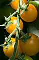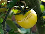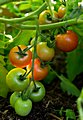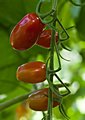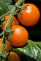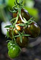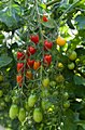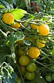 Der nächste Versuch 2014 verlief deutlich besser. Wir pflanzten 8 verschiedene Sorten, davon 6 alte Sorten, die kleine gelbe, orange, braune und rote Cherrytomaten hervorbrachten und hervorragend schmeckten, und kauften Samen für Ochsenherz und eine lila Cherrytomate. Insgesamt waren jetzt nur noch 30 Pflanzen im Gewächshaus (was eigentlich auch noch zu viele sind). Diesmal wurden sie mit Bast hochgebunden und die unteren Blätter abgeschnitten. So erreichten sie die Decke des Gewächshauses und brachten eine reichliche Ernte.