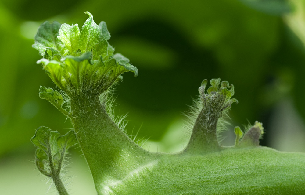 An einigen größen Blättern bildeten sich auf dem Blattstiel kleine Auswüchse, die sich zu kleinen Tomatenpflanzen mit Blüten und Früchten weiterentwickelten. Eine echt bizarre Pflanze.