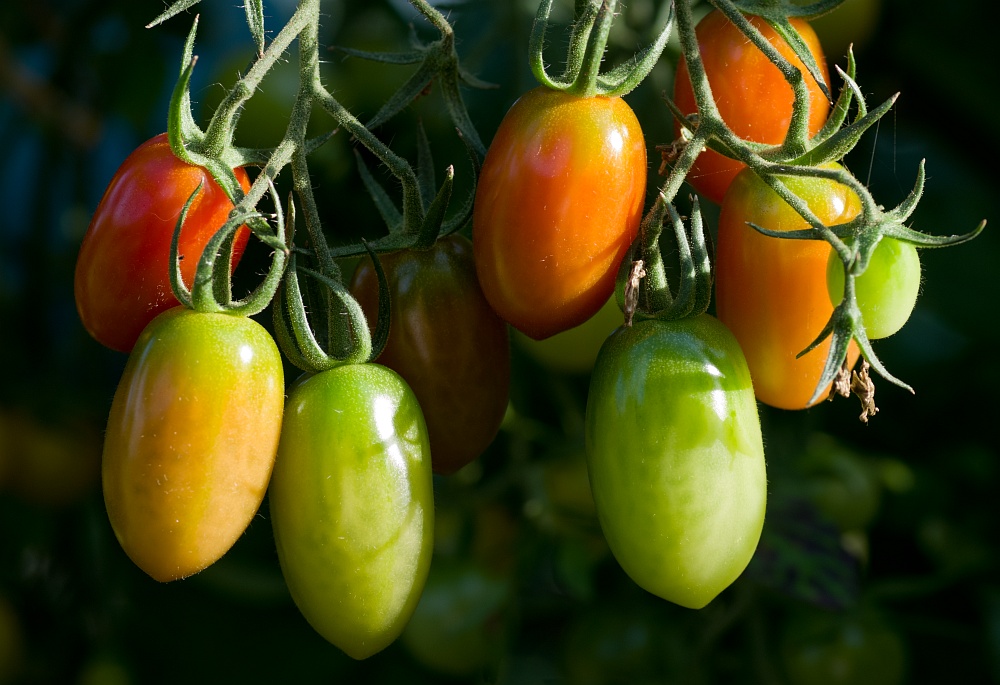Rote kleine Flaschentomaten, auch eine alte Sorte, sehr schmackhaft. Die wurden so ca. 3-4cm lang.