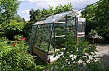 Ein Gewächshaus wäre doch eine schöne Sache, überlegten wir. Mein Gartenkompagnon kam durch Zufall an ein komplettes, 3x4m großes Gewächshaus aus verzinktem Stahlblech und Glas. Beim Abbau gingen leider viele Scheiben zu Bruch. Auch das Fundament mussten wir neu bauen. Aber da ein neues sowieso nur maximal 6qm Fläche haben darf, hatten wir ausreichend Material. Der Name "Vitaminbunker" ist angelehnt an den Energiebunker, der für die Internationale Bauausstellung (IBA) 2013 ins Leben gerufen wurde. Dazu wurde der Wilhelmsburger Flakbunker aus seinem Dornröschenschlaf geweckt und umgebaut.