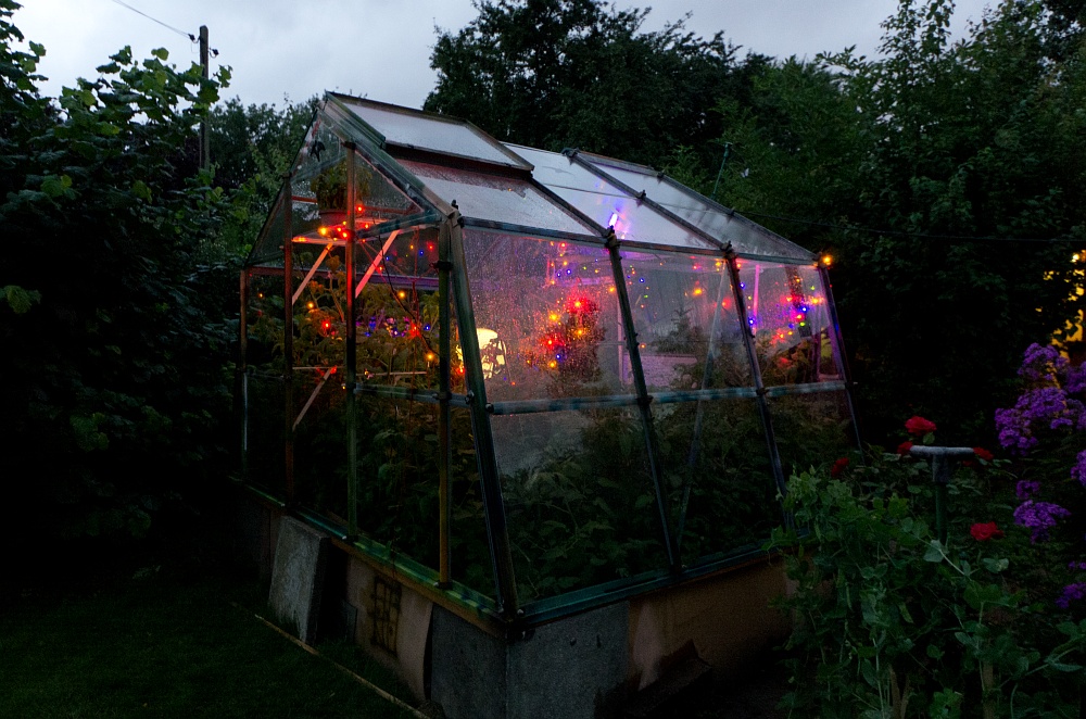 Der Vitaminbunker wird im Sommer von Lichterketten und einem Globus beleuchtet.