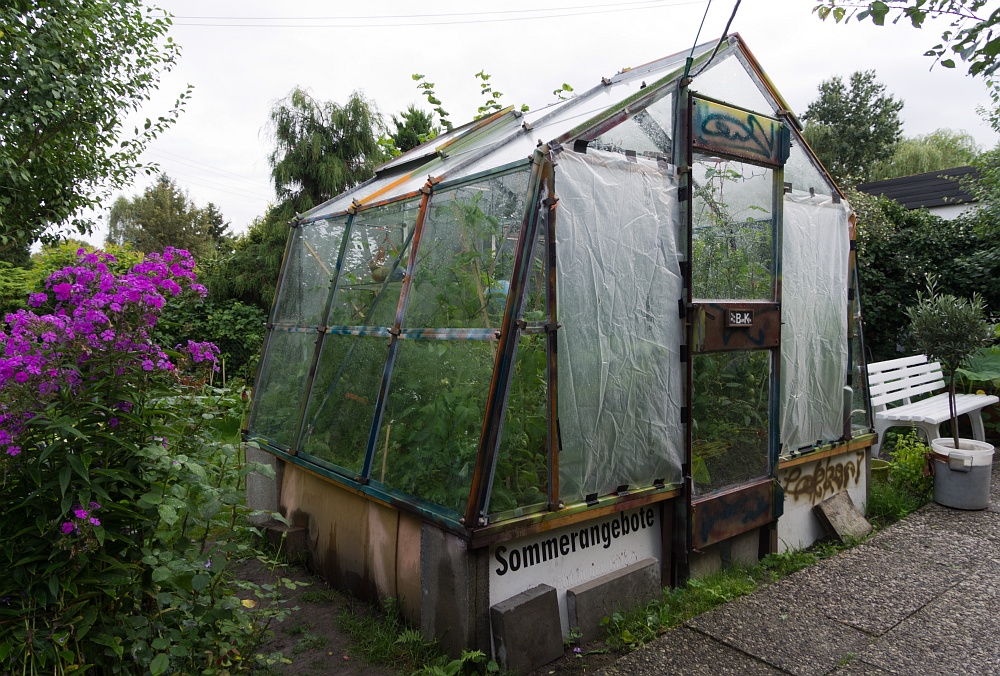 Spätsommer 2013, es wird nachts kühler. Die "Wilhelmsburger Notverglasung" wurde eingesetzt. Sie hielt den ganzen Winter über stand.