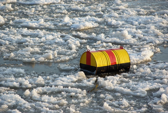 Ein altes Ölfass dienst als Markierung (Januar 2010).