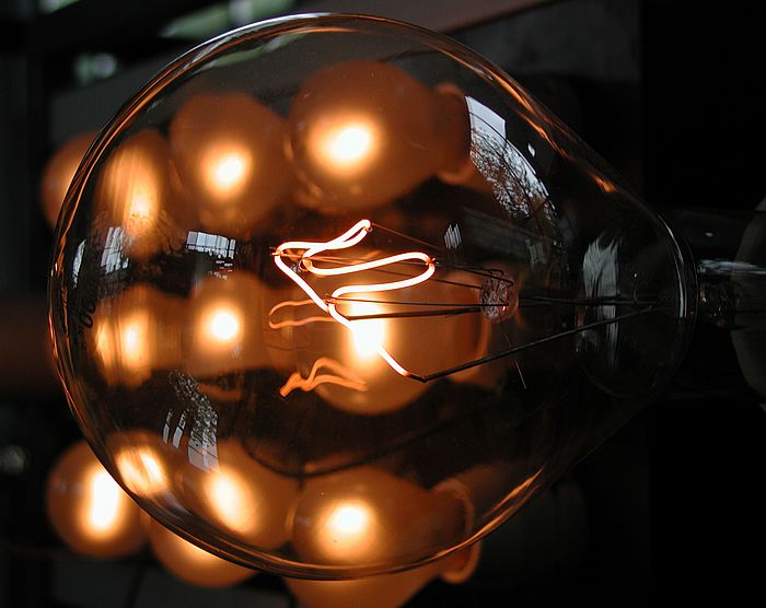 Im Vordergrund ist eine glimmende 1000W-Glühlampe zu sehen. Hiermit wurde uns ein tragbarer Stromgenerator mit Dieselmotor von 1940 vorgeführt.