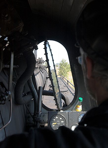 Viel sieht der Lokführer ja nicht gerade. Und es ist unangenehm heiß dort oben auf der Lok. Aber es roch schön nach verbrannter Kohle und wir fuhren ein paar hundert Meter weit. (2006)