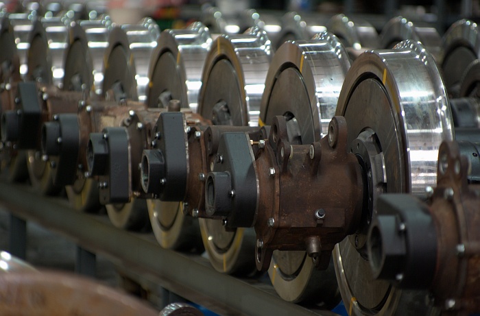 Achsen-/Laufrad-Sätze in der Instandsetzungshalle.
